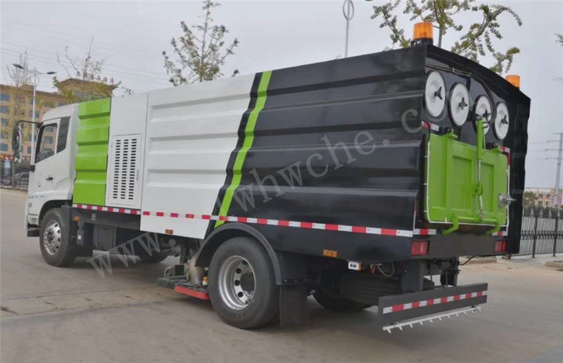 帶中置吸盤、施耐德**開關、江鈴副發動機、海普瑞斯電磁閥組、無級變速自動離合器、免維護離心式風機、高精度垃圾箱過濾系統(**高可達0.3微米)、進口脈沖閥、尾部LED箭頭燈、手動泵應急系統;車尾霧狀噴水潤濕功能。
