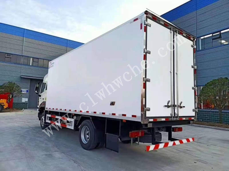 廂體全面采用優(yōu)質(zhì)玻璃鋼制造,樹脂膠無縫粘連,中間8CM厚聚氨酯保溫板,后門全密封雙開門,不銹鋼后門合頁及鎖件,廂體內(nèi)部采用LED照明燈及廂體示寬燈,品牌專用冷機(jī)、底板為防滑花紋鋁板。