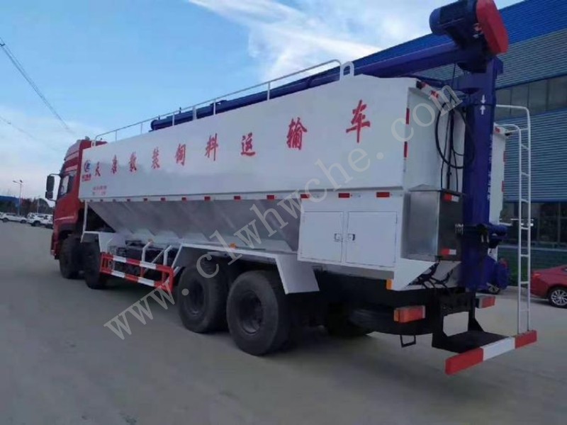 散裝飼料運輸車在裝卸及運輸過程中全程采用用密封設備,防止飼料與外界接觸,而目前通過普通貨車運輸或者袋裝運輸是無法達到的。