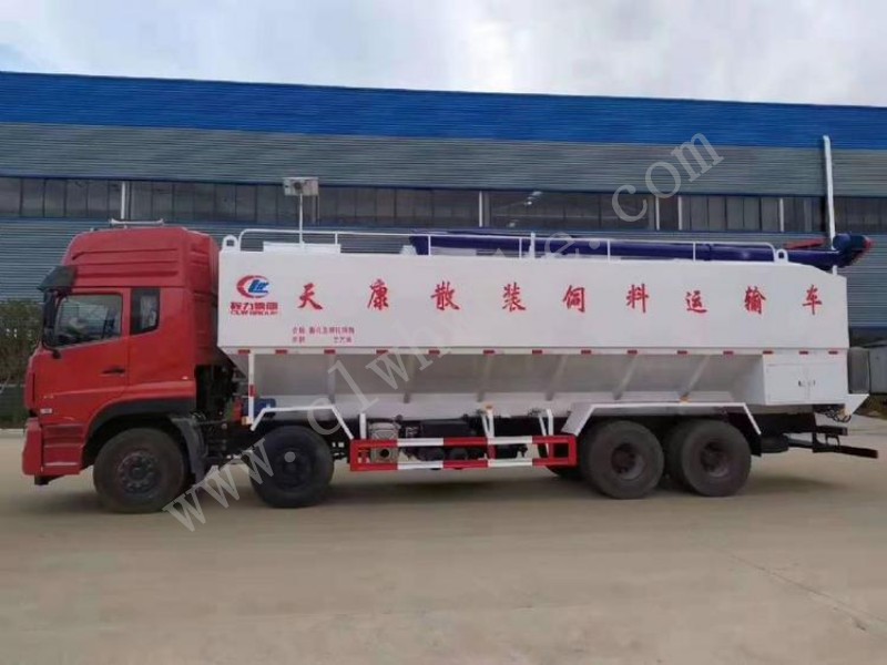散裝飼料車,又名散裝飼料運輸車,飼料運輸車。結構簡單、性能可靠、輸送量大、操控方便、機動性強、對物料無污染等特點,廣泛應用于各大中小型養殖企業的飼料的運輸。